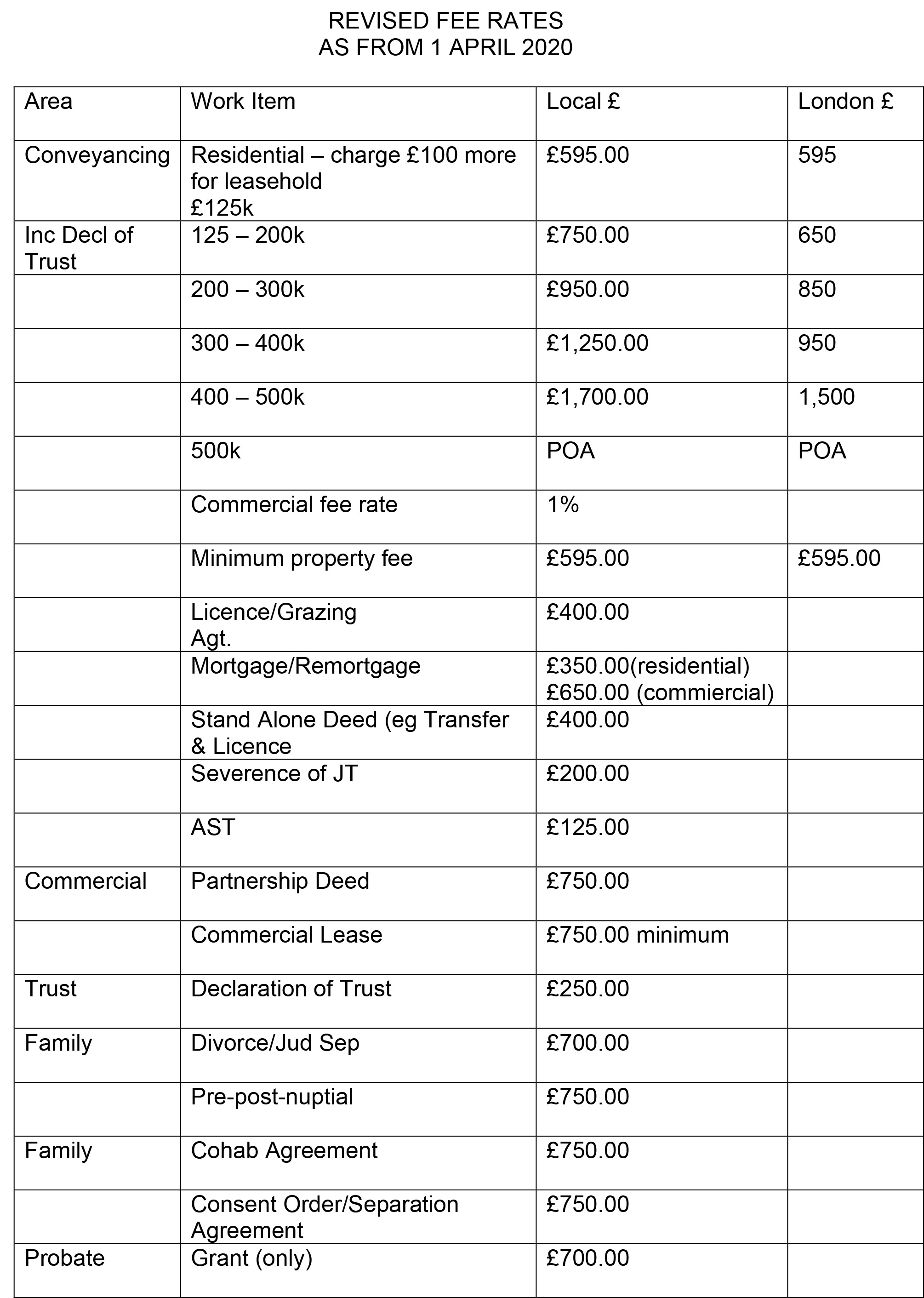 Please see details of our Fixed Costs page on the home page. If this is not a simple matter, this will have to be dealt with on an hourly basis. It is very difficult to advise how ling each matter will take and we will provide further information in this regard as soon as we have further instructions. The Probate fees is as per the You Gov link as follows:-